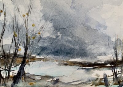 Samantha is a watercolour and mixed media artist based in Oro-Medonte, Ontario. Her work offers expressive interpretations of local landscapes and the quiet richness of everyday rural life. Using watercolour, willow charcoal, and ink, she explores movement, atmosphere, and emotion—bringing dynamic landscapes and figurative horses vividly to life. An avid plein air painter, Samantha documents her outdoor painting experiences on her YouTube channel, hosts in-person workshops, and regularly participates in local exhibitions.